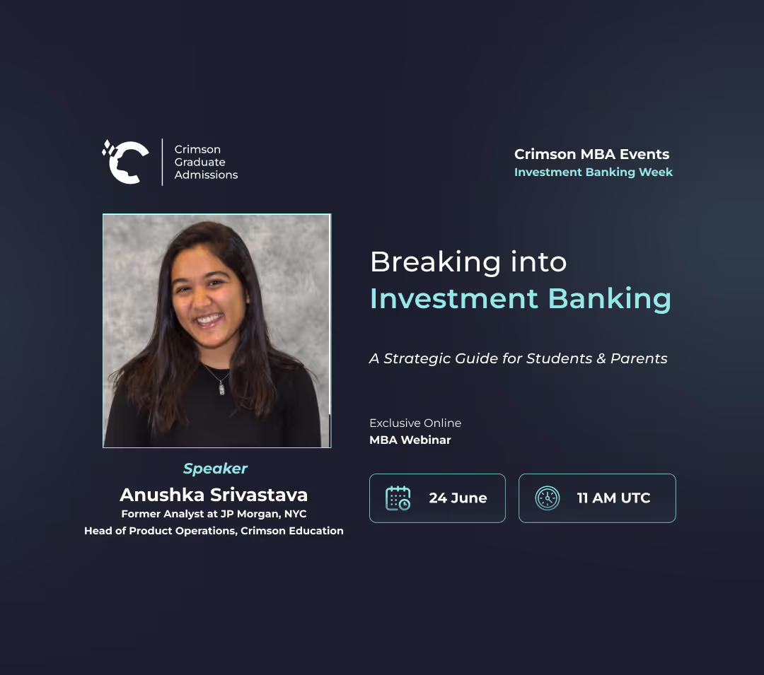 At Crimson MBA, we run monthly webinars packed with expert insights on elite MBA admissions. We also offer a growing library of resources to help you get into the world’s top business schools. If you want to stay in the loop, do subscribe for regular updates and exclusive access to new content and events. You can also follow us on social media for real-time updates and to connect with our community.